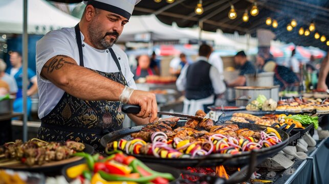 73. A chef grilling food at an outdoor festival