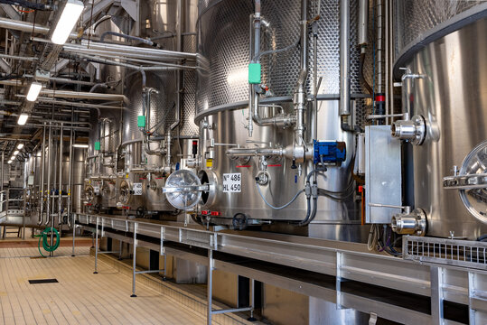 Stainless steel pipes in the factory. Construction on food production, Abstract industry background. : Generative AI