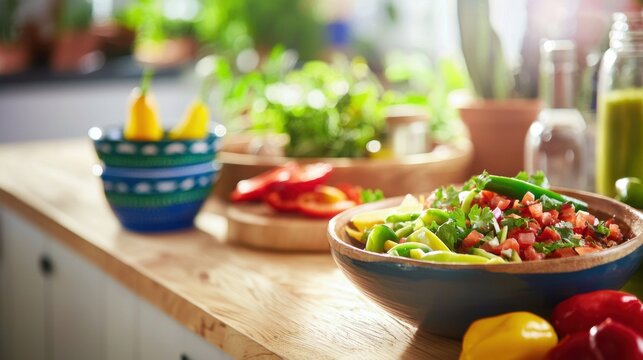 Bright and Cheerful Kitchen with Mexican Food Prep