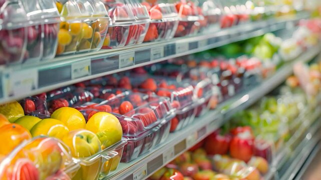 Grocery shelf with fresh produce, displaying strawberries, apples, and citrus fruits in plastic containers, Establishing clear procedures for handling food recalls
