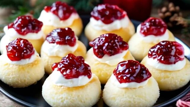 raspberry tart dessert mini sweet pastries gourmet bakery treats elegant party food videography smooth 4k video motion footage