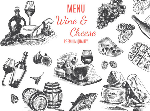 Vegetarian food background. Hand drawn vector illustration in sketch style. Restaurant menu design