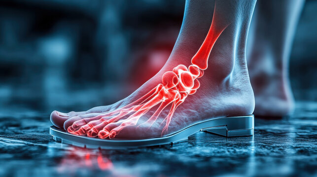 Medical illustration of foot highlighting nerve pain and inflammation, ideal for healthcare and educational purposes.