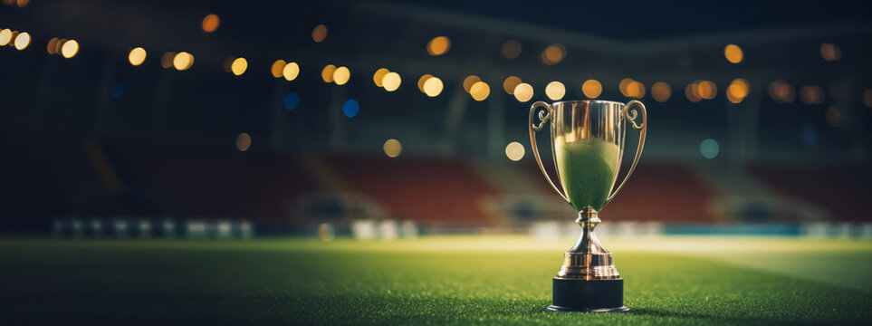 Golden cup Vector realistic. Football finals Competition. Mock up design 3d Flyer template golden backgrounds