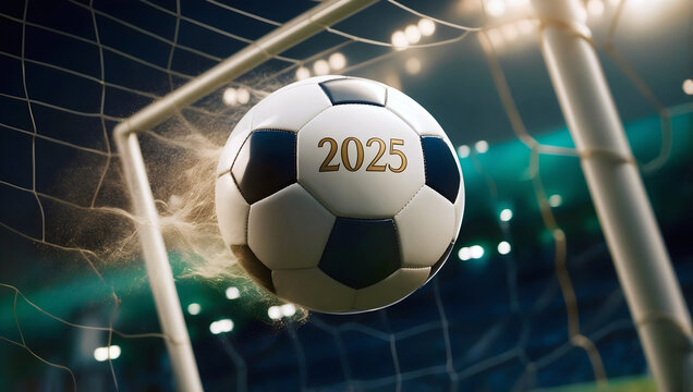 happy new 2025 year soccer themed, football background, sport concept, template, soccer field