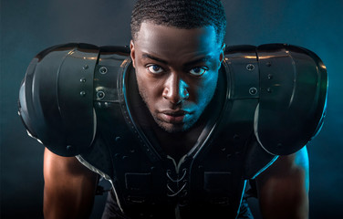 Focused american football player ready for game day