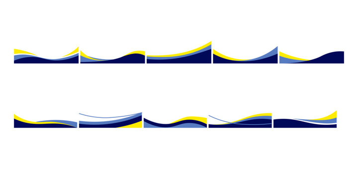 Bright fresh collection of soft blue-green waves. Abstract smooth soft dividing lines, trendy headers or footers
