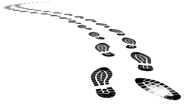 Footprints Trail, Black Shoe Prints Leading Forward, White Background