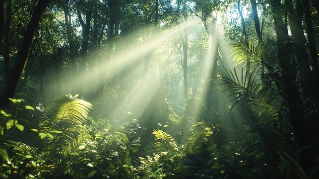 Forest conservation awareness poster with morning light