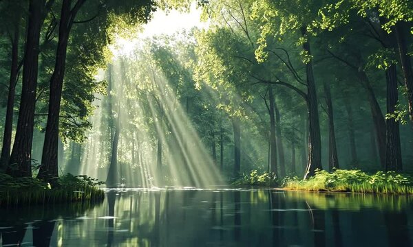 Beautiful bird's eye view above evergreen forest tree tops and flowing river in Carbonado, Washington State