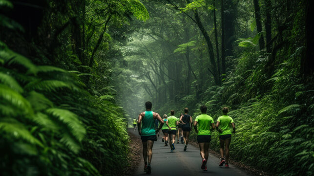 running marathon on the track in the forest jungle generative ai