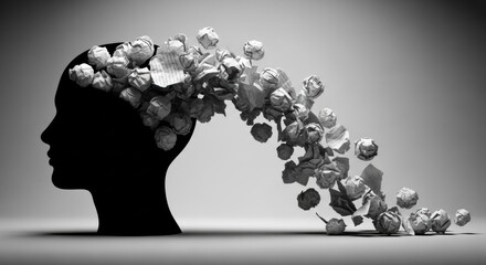 Monochrome Metaphor: A Mind Unburdening a Cascade of Crumpled Ideas