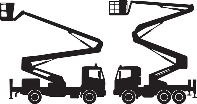 Pair of boom lift truck silhouettes with transparent background for easy use