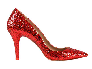 Sparkling red glitter high heels for women, stylish and glamorous, isolated on white background PNG transparent.