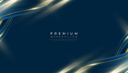 Luxury Blue and Gold Background in Paper Cut Style with Shining and Sparkling Gold Light Effect. Can be Used for Award, Banner, Card, Nomination, Ceremony, Formal Invitation or Certificate Design