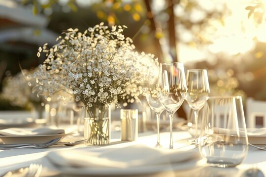 Elegant table setting with floral centerpiece