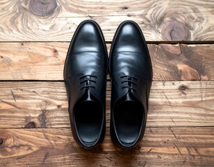 Black leather dress shoes on wooden planks (3)