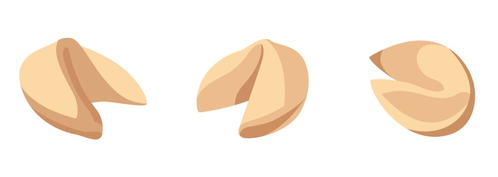 Chinese fortune cookie set. Vector illustration.  Isolated on white. Food, dessert, good fortune theme design element.