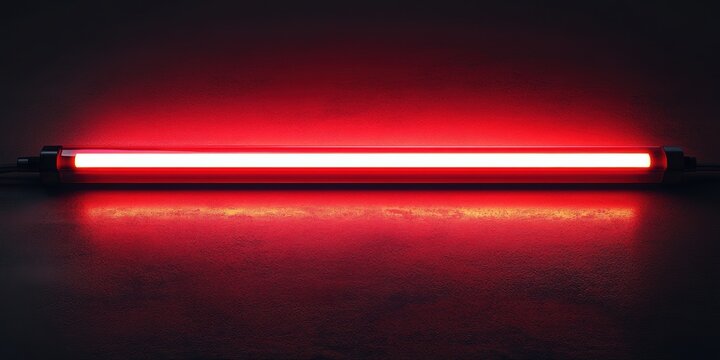 Illuminating action with red neon light studio setting graphic design dark environment low angle view modern concept