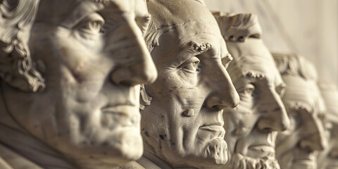 Guardians of the Constitution: Portraits of U.S. founding fathers adorn a solemn-looking marble wall