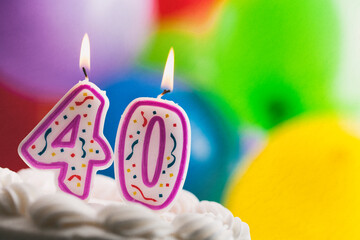 Number 40 Birthday Candles Against Colorful Balloon Background