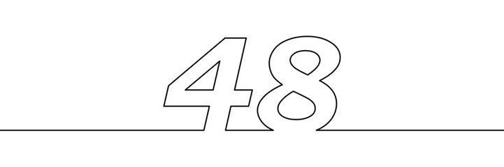 A single line drawing of a  fourty eight symbol. One line icon. Continuous line forty eighth number icon. Simple black outline of the number 48. Vector illustration