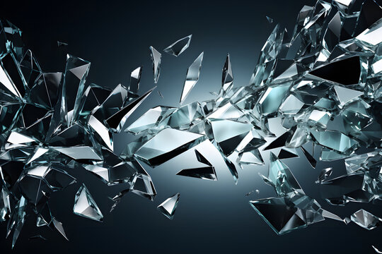 Wallpaper of scattering broken glass fragments. Symbol of failure, explosion, mistake, moment.