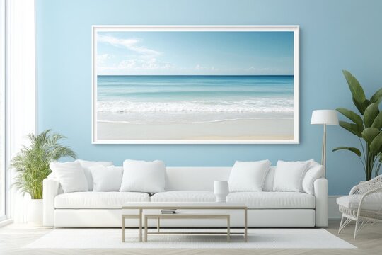 Bright kitchen wall mockup with a framed artwork and clean white decor