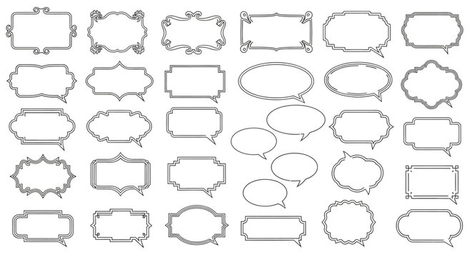 Collection of Ornate Frames and Speech Bubbles Decorative Borders and Text Boxes