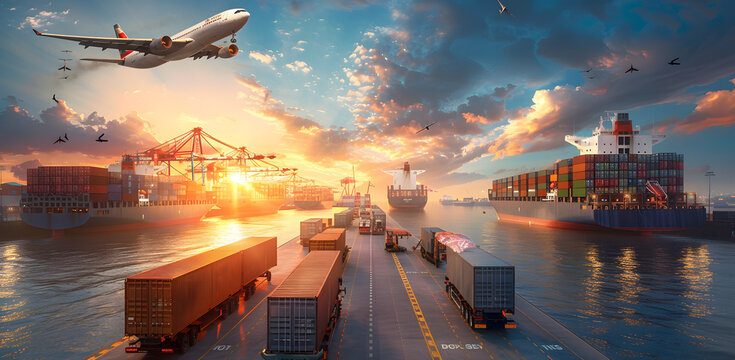 Confident businesswoman promoting logistics and transport services