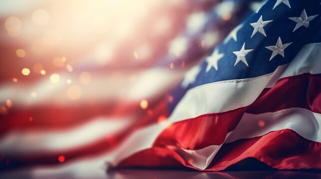 AI generated celebratory fireworks on background of american flag at usa independence day