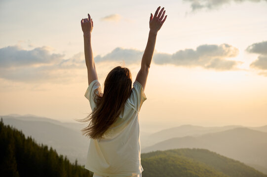 Caucasian woman embracing freedom on never give up day