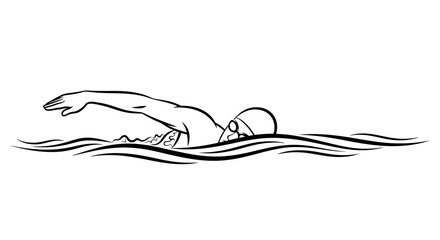 Silhouettes of swimmers in water, freestyle swimming stroke, competitive athlete training, swimming pool sport, goggles, swimming action, fitness, vector illustration