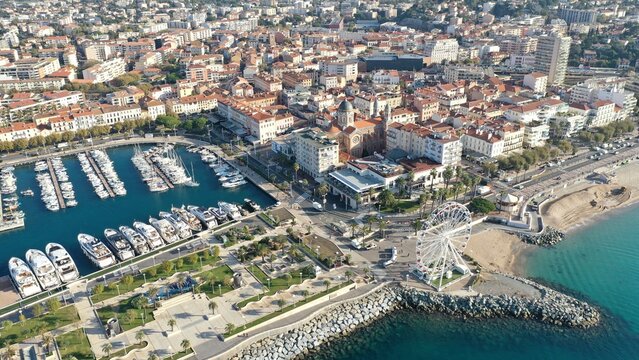 Aerial of Frejus Harbor in the South of France, Cote d'Azur, Var,