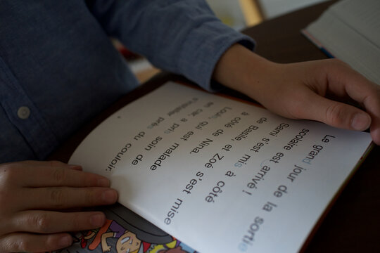 Teenager girl with the flag of France. Schoolgirl is studying French. Copy space.