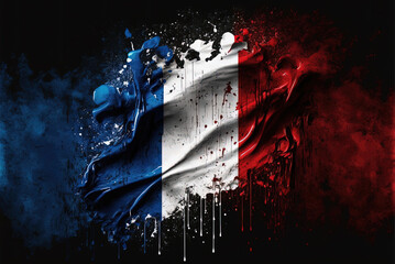 France flag on cracked concrete wall. The concept of crisis, default, economic collapse, pandemic, conflict, terrorism or other problems in the country. Abstract disaster symbol.