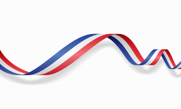 Long table set for a garden party under french flag bunting. Outdoor celebration for Bastille Day, a national holiday, or a large family gathering