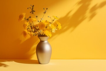 AI generated illustration of a vase of vibrant yellow blooms in a modern interior setting