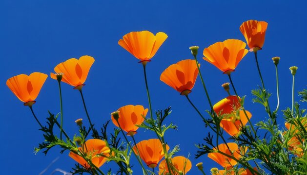 Vibrant California Golden Poppies Blooming Under a Blue Sky