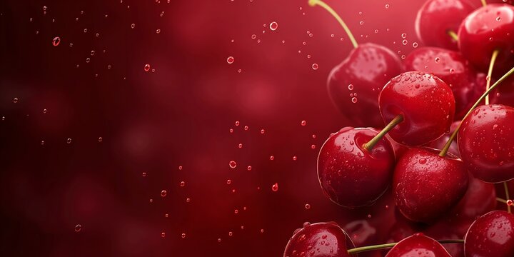 Cherry background. Flying berries with blurry effect. Red cherries falling on transparent background. Can be used for wallpaper, banner, poster, print, fabric, wrapping paper. Vector 3d realistic
