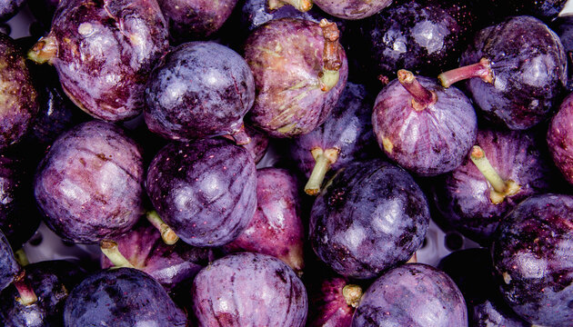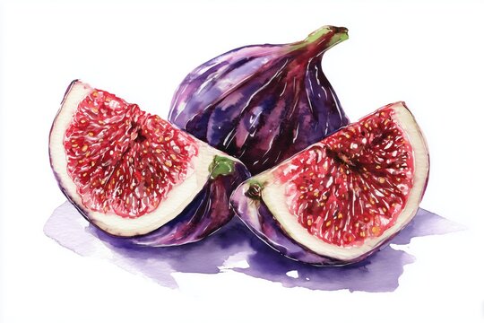 Figs Still Life: A vibrant arrangement of fresh figs, showcasing both whole and halved fruit, with leaves adding a touch of natural elegance.