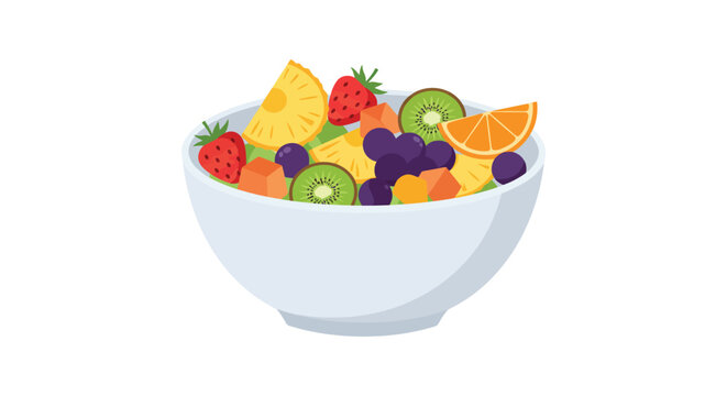 A colorful fruit salad presented in a simple white bowl illustration