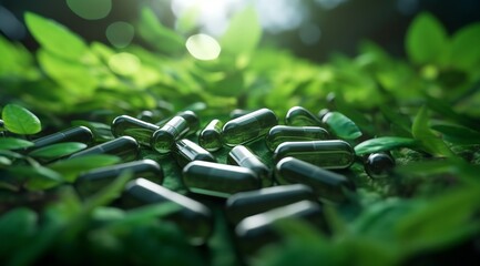 Bowls of dry different healing plants and fresh green medicinal herbs - rosemary and thyme. Bottles of dry medicinal herb for making tinctures or infusions. Alternative herbal medicine.