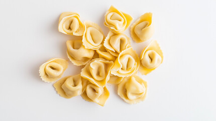 Delicious shrimp pasta on a white background with fresh basil and spices splashing in the air for a vibrant culinary presentation, cut out