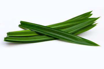 Fresh pandan leaves on white background.