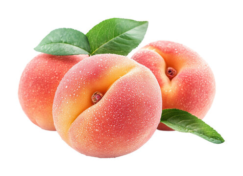 Fresh peaches harvested in orchard juicy fruits natural isolated on transparent background