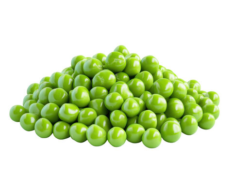 Assorted bowls of fresh green peas and pea pods arranged on a transparent background showcasing various sizes and textures of peas in natural light