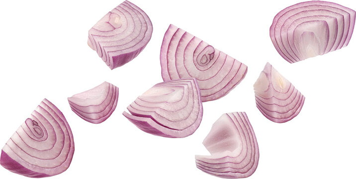 Red onion sliced, diced, and whole isolated PNG with Transparent Background