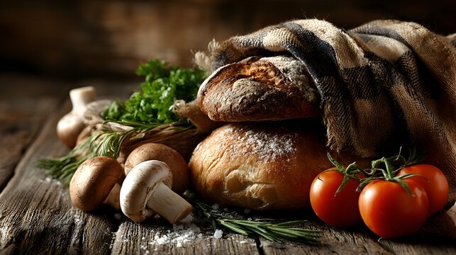 Fresh Vegetables And Bread On Rustic Wooden Table Templates