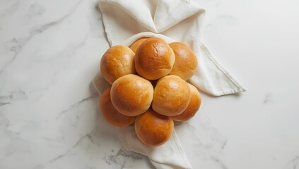 Soft freshly baked mini buns with butter on marble and towel, highlighting homemade baking techniques